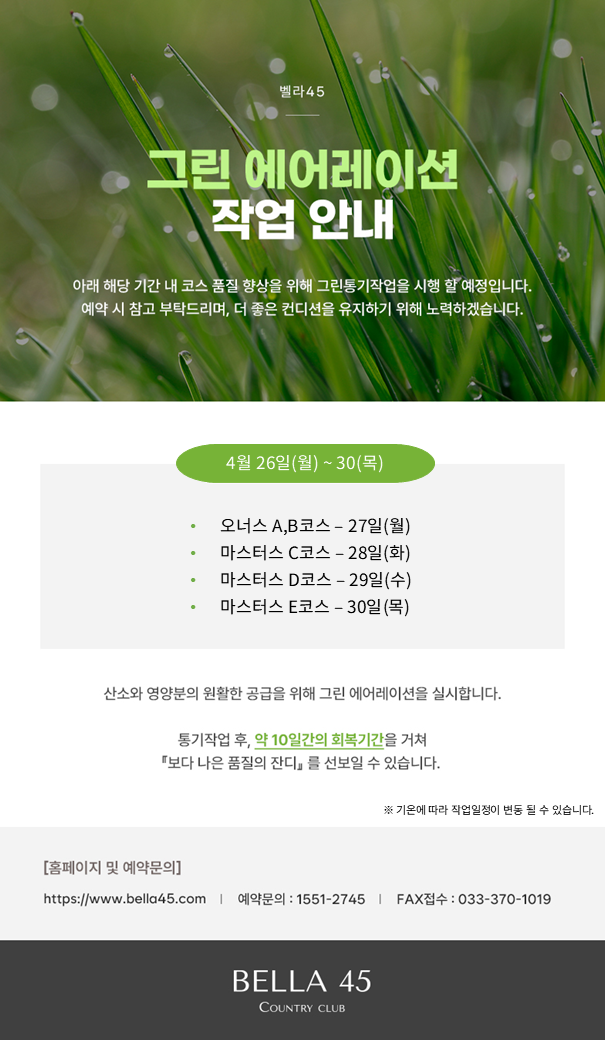 제목 그린 에어레이션 작업 일정 안내 2026-03-15
